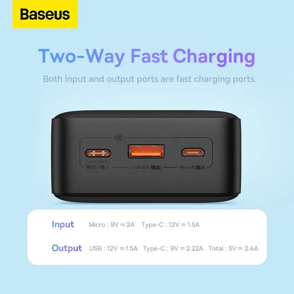 Зовнішній акумулятор Baseus Airpow Fast Charge 30000mAh — це справжній енергетичний резерв для ваших гаджетів. Його ємність у 30000 мА·год дозволяє не хвилюватися про розрядку смартфона, планшета або смарт-годинника протягом декількох днів. Тепер ви завжди залишаєтеся на зв’язку, навіть під час тривалих подорожей або насиченого дня, коли доступ до розетки обмежений.